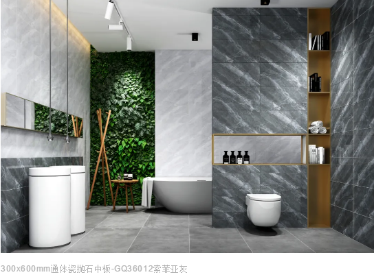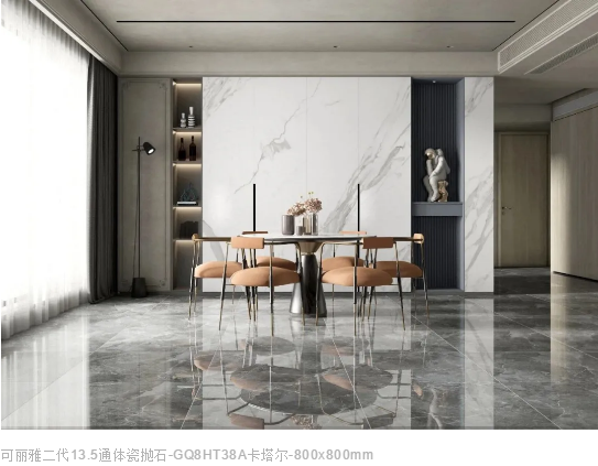 搭配暖灰色理石大板鋪貼地麵