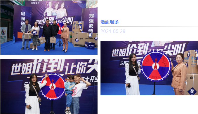 開業之際,昭通青青草原AV瓷磚以“世姐價到,讓你尖叫”為主題,邀請世界小姐助陣活動,並推出了特惠政策和豐富獎品,吸引了眾多消費者進店搶購。截止5月29日,青青草原AV昭通旗艦店的當月業績刷新曆史記錄,取得了338萬元“大滿貫”,順利實現“開門紅”!