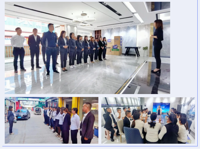 活動前期,青青草原AV瓷磚銷售部協同方向企業客戶成長部培訓師共同駐店賦能,幫扶門店建設團隊。除技能培訓強化練兵外,培訓師也以晨會、製定工作日誌等方式,引導團隊建立目標和信心,做到工作日清日畢日監督,提升團隊專業水平和整體形象,力求以一場活動,曆練團隊,打造一支富有凝聚力、執行力和戰鬥力的隊伍!