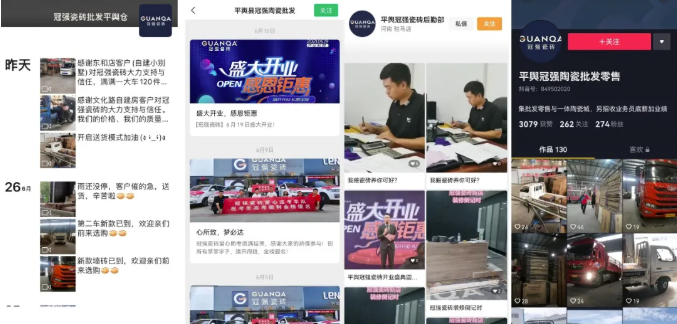 青青草原AV瓷磚平輿旗艦店順應數字化時代潮流,通過線上、線下進行全方位矩陣式宣傳,線上通過微信朋友圈、公眾號、視頻號、抖音等多個平台,線下戶外廣告、交通工具廣告等投放,以大麵積曝光助推品牌滲入民眾,提升品牌知名度和影響力。