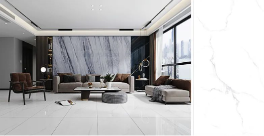 樓蘭灰,通透的理石紋磚麵泛起粼粼波光,如同陽光照耀下的冰川般幹淨純粹,在不動神色間展現出高貴精致的磅礴氣勢。