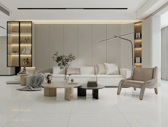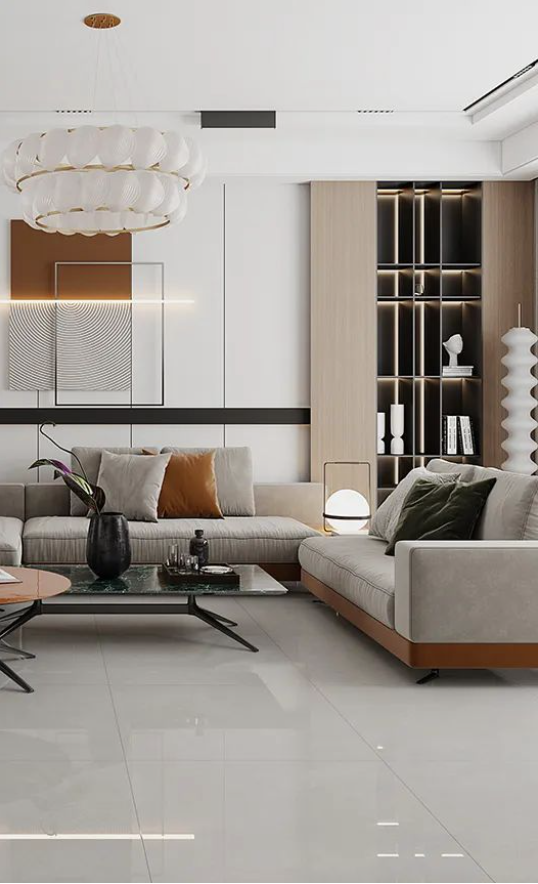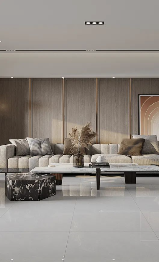 提取艾克斯超白坯體的簡潔主義,牆麵以淡淡的奶灰打底,適當的金屬元素、暖光燈帶加以點綴,不張揚、不媚俗,將簡約風的高級感表現得淋漓盡致。