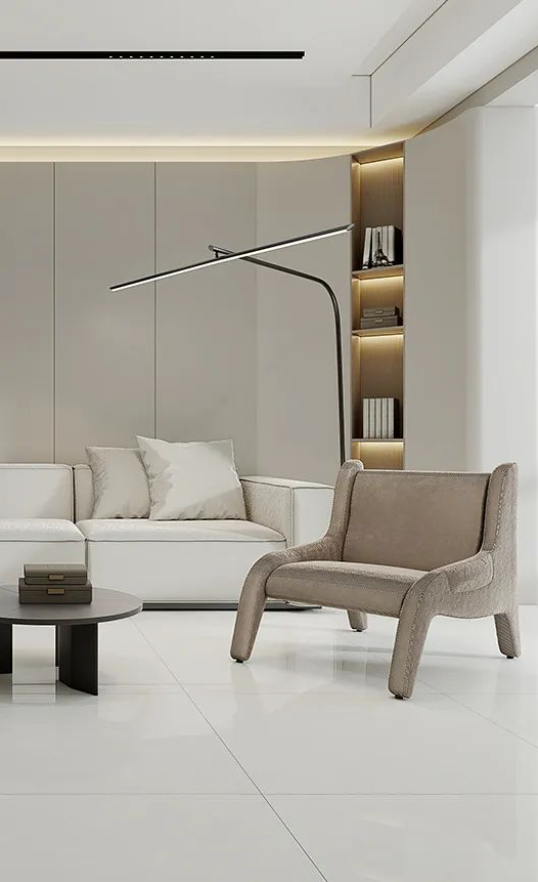開放式客廳與組合型茶幾靈活於空間活動之中,1500轉高耐磨度席夢娜作為地麵鋪貼,讓空間足夠開闊,笑聲得以承載的同時,每一寸美學空間都經得起時間磨練。